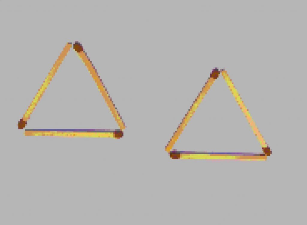 The challenge requires transforming these three triangles into a shape with four triangles, with a maximum repositioning of just two matches!!!