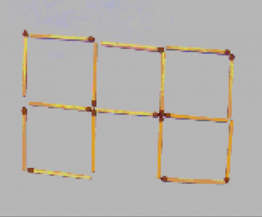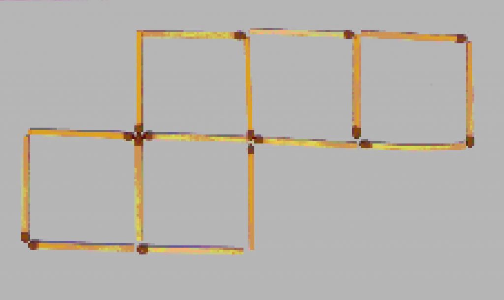 The challenge requires transforming these five squares into a shape with four squares, with a maximum of repositioning of just three matches!!!